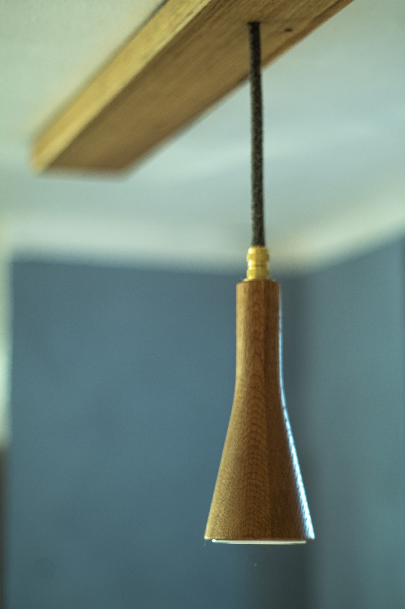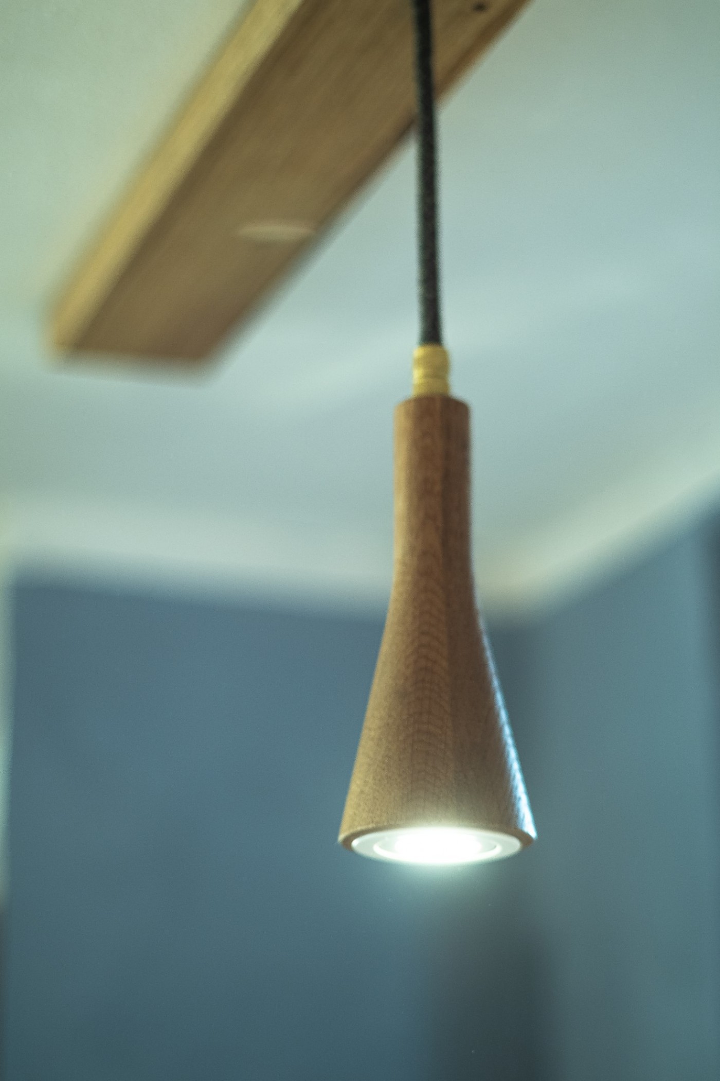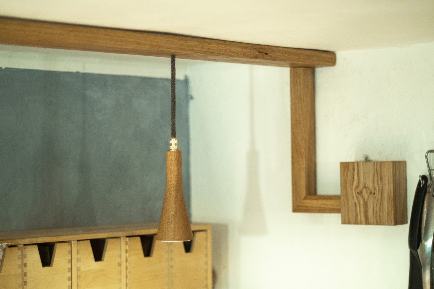 Für die Küche eines jahrhunderalten Hunsrückhauses, entwarf ich eine neue Küchenbeleuchtung, auf Basis der Sputnik-Leuchte. Da diese normalerweise mit Dekorleuchten betrieben wird, die den Anforderungen an die Reinlichkeit in einer Küche nur schwer gerecht werden können, integrierte ich Strahler, die bünding in das Holz eingelassen sind und so wenig Raum für Staub und Fett bieten. Man kann sie abwischen.