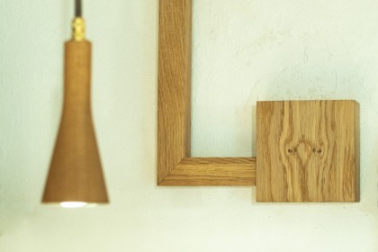 Der kleine Trafokasten an der Wand mit gespiegelten Maserbild, verleiht dem ganzen ein interessantes Detail, dass von Handwerk und der Liebe zum Detail erzählt.