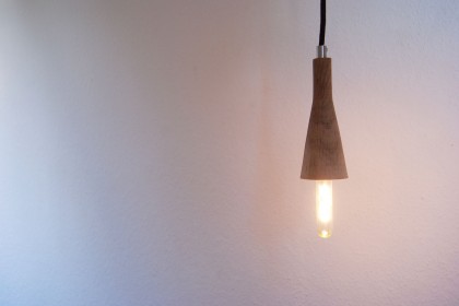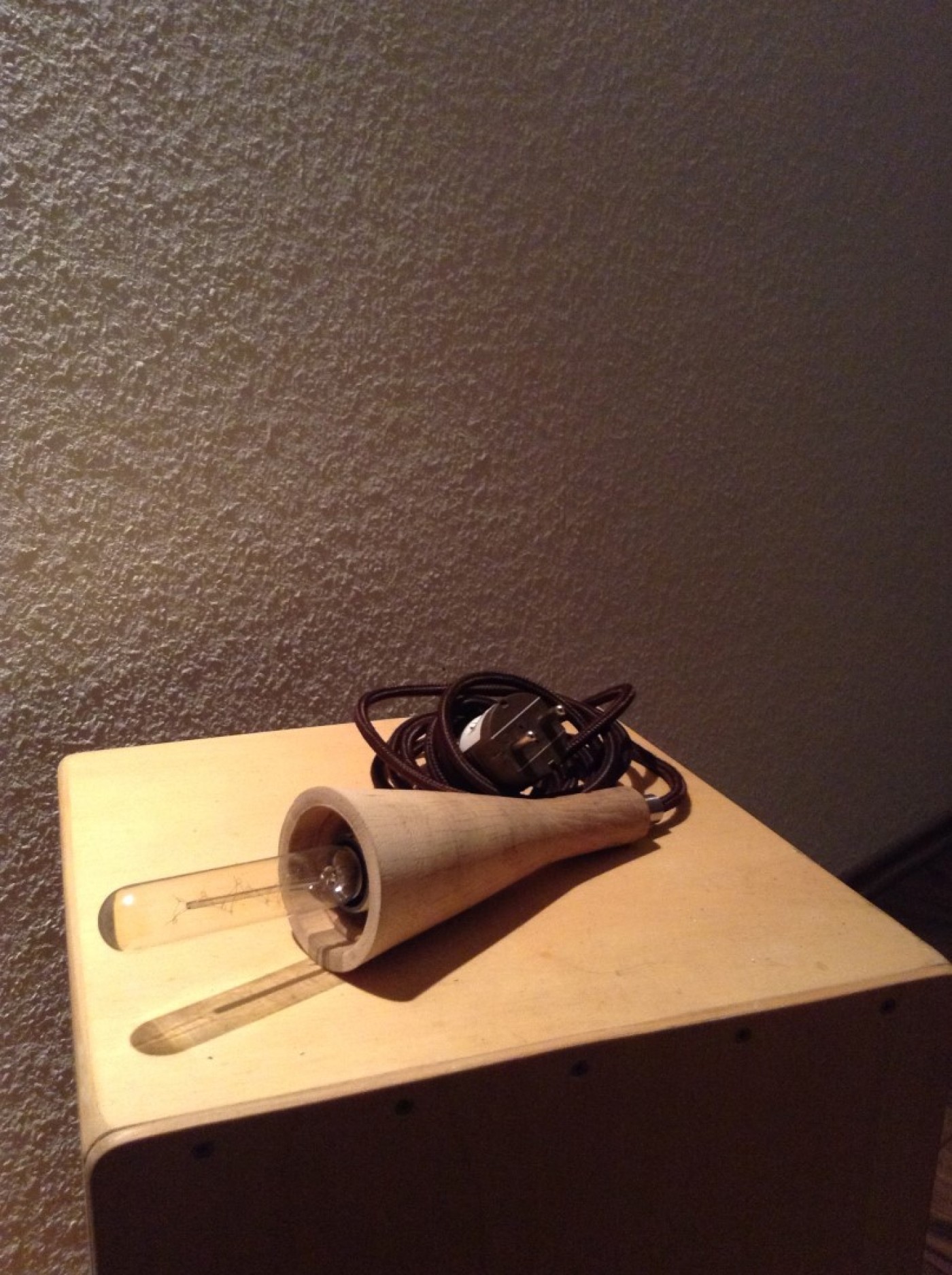 Gefertigt aus Eiche und mit Messingteil und einem schönen Textilkabel veredelt.