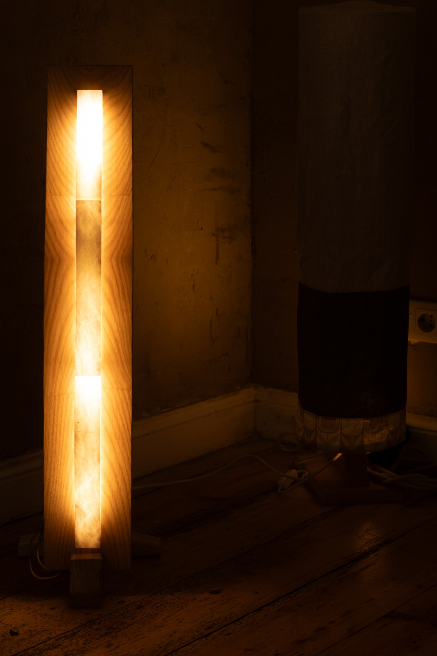 Stehleuchte aus Esche und Alabster